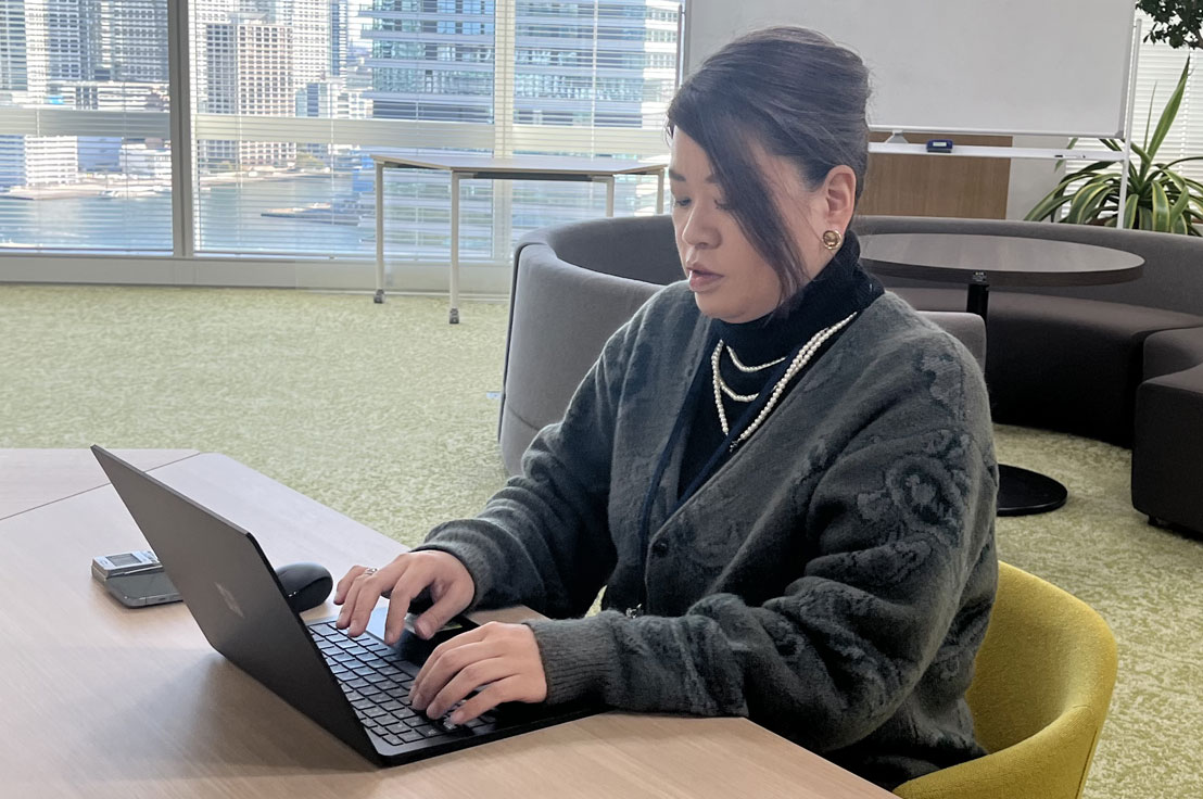 現在はリテール部門で、主に①大型職域団体従業員さまの自動車保険や火災保険の更改手続き、②団体契約の更改手続き、③飲食店舗オーナーさまの火災保険更改手続きを行っています。その他にも、更改データの検証・保険会社提供ツールの使用ルール作成などを行っています。移管元での業務を引き続き担当しており、スムーズに業務遂行出来ています。