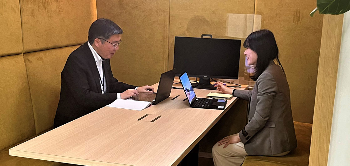 月1回程度、所属部署内での1on1ミーティングを実施しています。事業環境の変化、価値観の多様化など、仕事を取り巻く環境が変化する中、対話の質を高めながら、業務の基盤となる関係づくりやその人らしい成長サポート実現を目指しています。