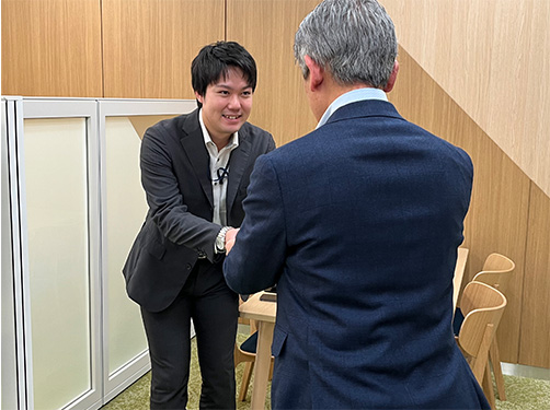 担当するお客さまに往訪します。既にあるご契約の維持以外にも、新たなリスクカバーのご提案なども行います。後輩育成の一環で、後輩社員に同行してもらうこともあります。