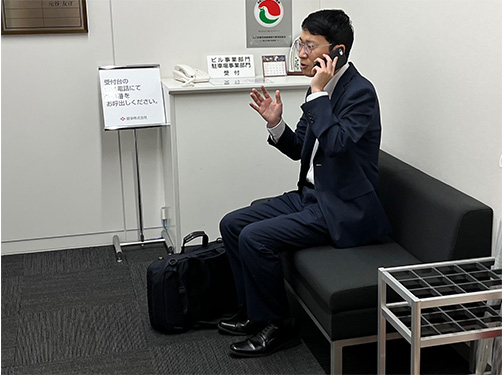 担当ビルに往訪します。当社のビルに興味のあるお客さまに実際に現地での内覧に対応したり、商談を行ったりします。