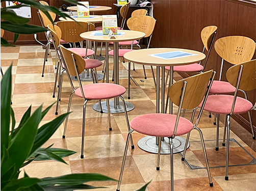 社内の喫茶スペースで昼食を取ります。