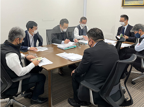 - ビル営業では主に各担当ビルのリーシングを行っています。進捗状況やお客さまへの提案内容などについて部内で打合せを行います。