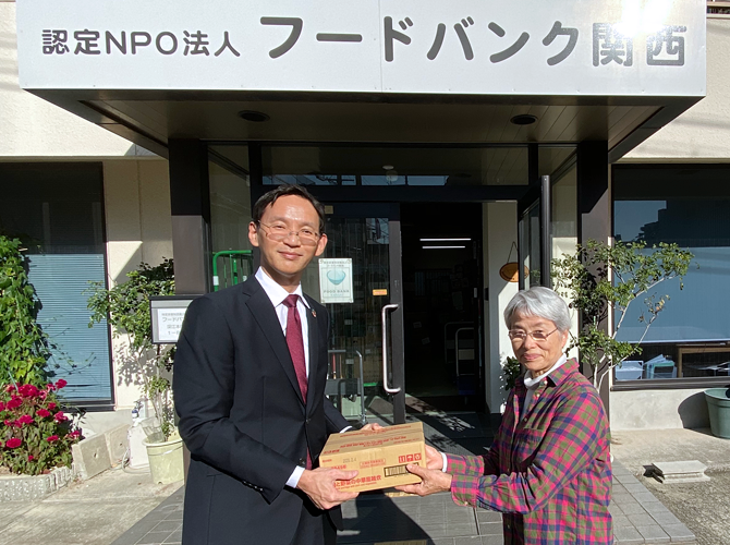 災害時用の備蓄食料等を、更新時に関西、東京のフードバンクに寄贈しています。