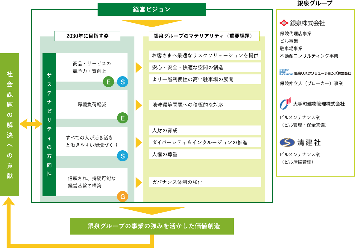 銀泉グループのサステナビリティの方向性とマテリアリティ