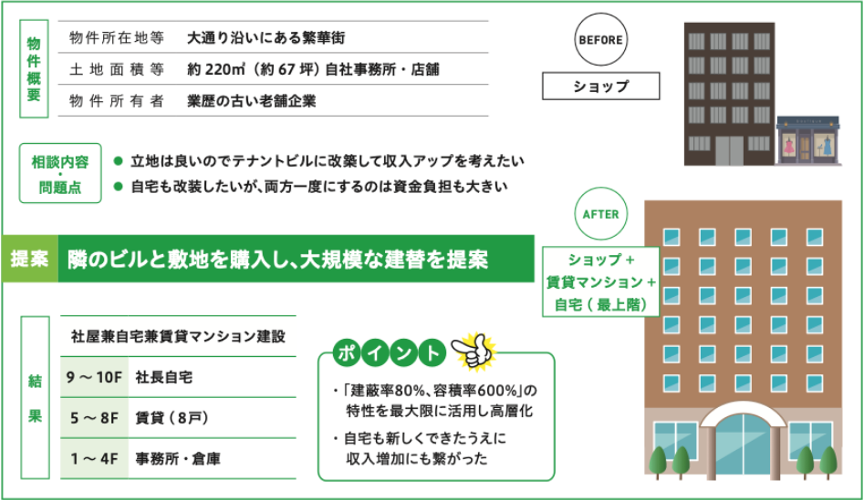 “本社ビル”から“本社兼マンション兼自宅”へ(老朽社屋の建替+収入アップ)