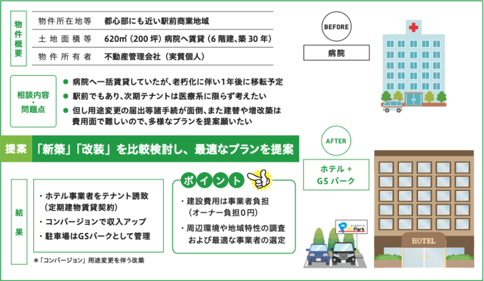 “病院”から“ホテル”へ(改装による「建物賃貸」収入アップ)